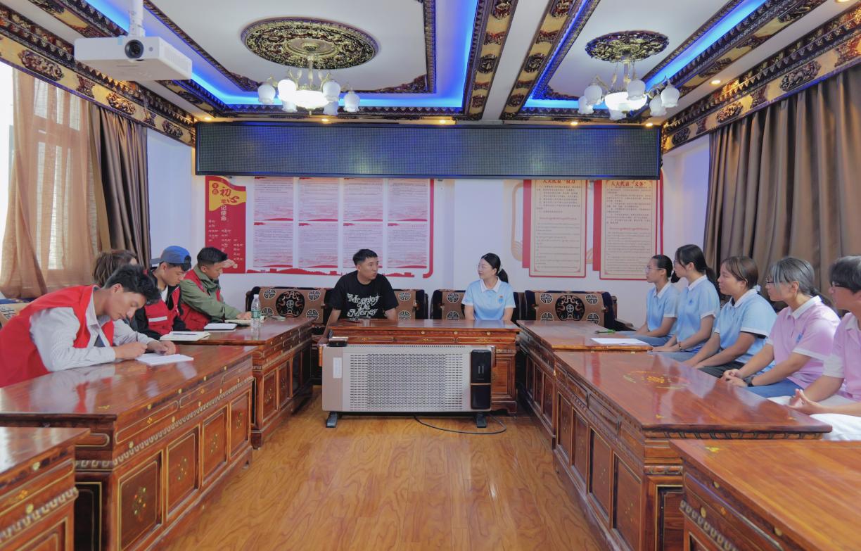 为总结实践成果、深化服务成效,8月7日,江苏“益+医”志愿服务团在雄嘎社区会议室与社区工作人员、志愿者代表召开社会实践总结交流座谈会,共同回顾为期5天的服务历程,分享经验感悟,共话未来合作。