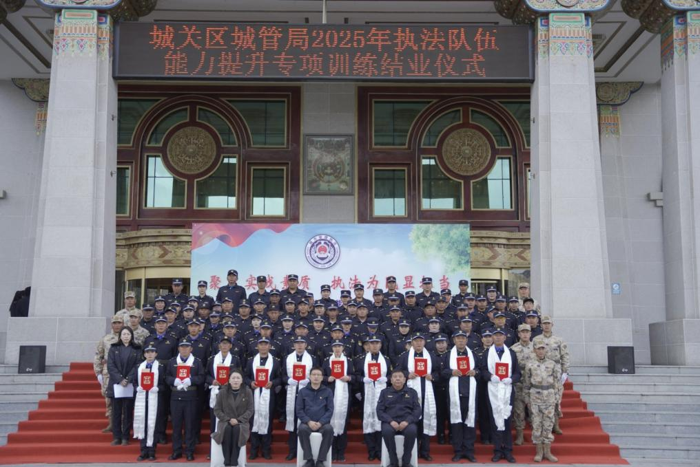 10月23日,为期15天的城关区城管局2025年执法队伍能力提升专项训练圆满结束。城关区委副书记索朗仁青,城关区政府副区长次仁曲宗出席结业仪式,城关区城管局党组书记、局长尼玛顿珠主持结业仪式,各街道办事处城管办主任、全体参训学员及各街道执法中队正副队长参加活动。