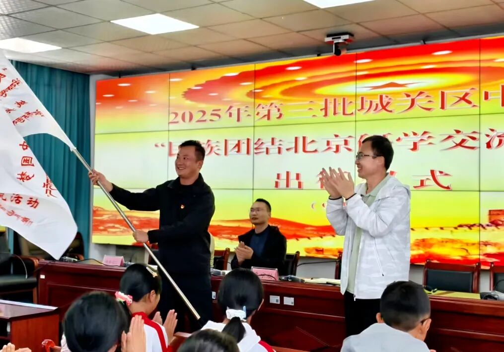2025年第三批城关区中小区民族团结北京研学交流活动出征仪式。