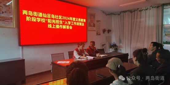 为保障2024年度义务教育“阳光招生”专项行动平稳有序开展,仙足岛社区第十三批驻村工作队联合居委会于7月14日在仙足岛社区三楼会议室召集辖区居民以及联户长开展2024年度义务教育招生政策宣讲及线上操作解答会,辖区30余名居民群众参加此次宣讲会。