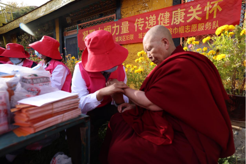 为关爱宗教界妇女身心健康,传递健康理念与组织温暖,10月23日下午,城关区妇联携手城关区人民医院巾帼志愿服务队走进强嘎日追寺开展以“凝聚巾帼力量 传递健康关怀”为主题的健康义诊活动,将贴心医疗服务和健康知识送到尼姑身边。