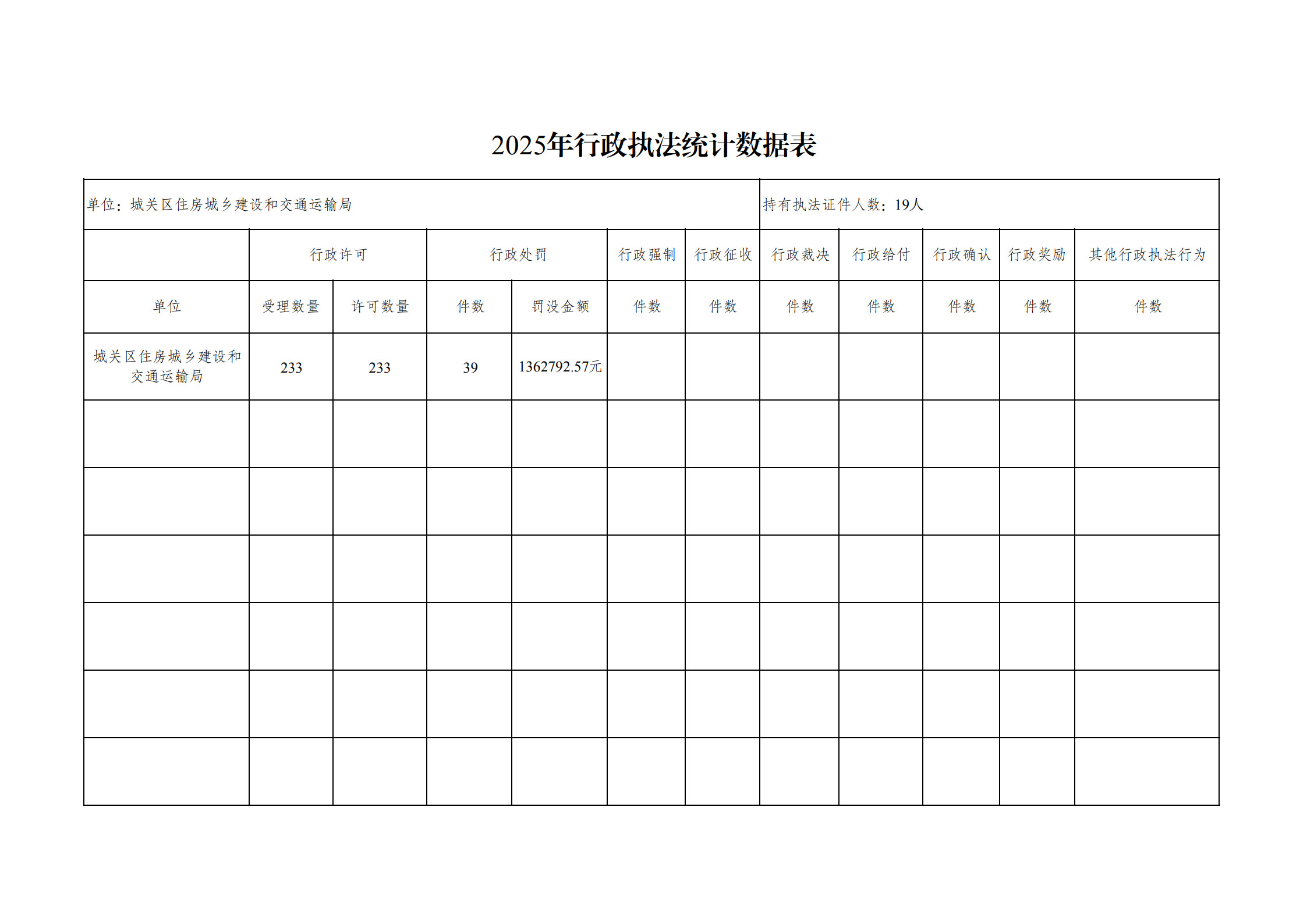城关区住房城乡建设和交通运输局2025年行政执法统计数据表