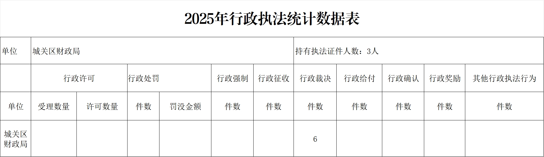 城关区财政局执法情况统计