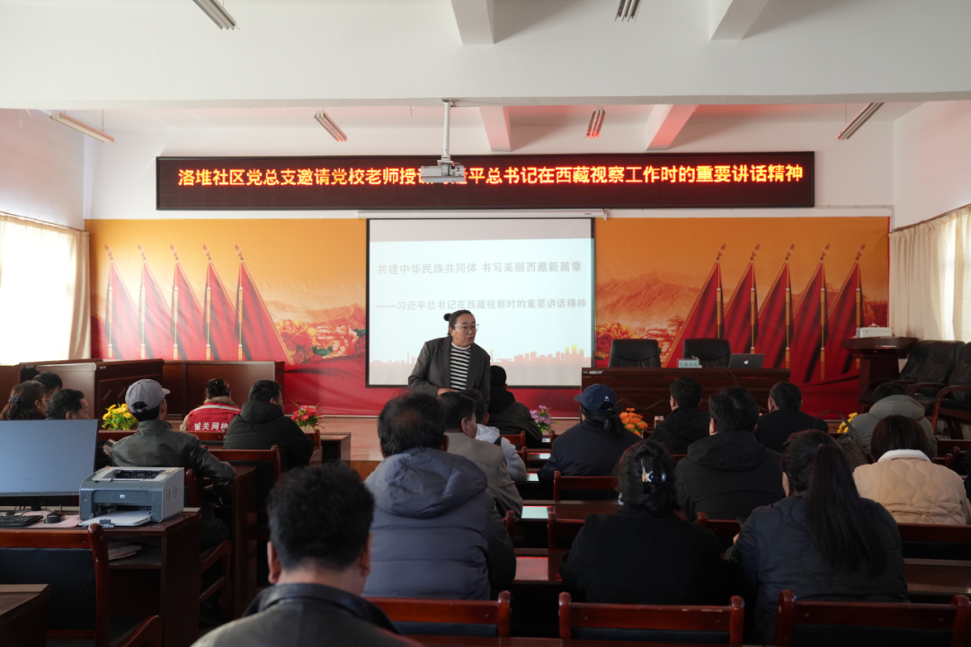 10月27日,洛堆社区党总支邀请拉萨市委党校老师巴桑卓玛宣讲习近平总书记在西藏视察时的重要讲话精神。