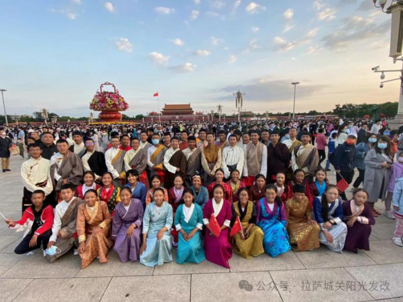 拉萨市北京中学“北京班”赴京游学,参加天安门广场升旗仪式