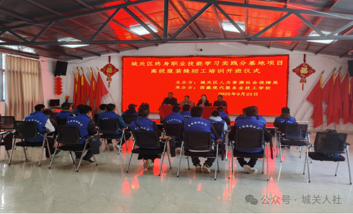 2025年9月23日,由城关区人力资源和社会保障局主办、西藏现代服务业技工学校承办的“城关区终身职业技能学习实践分基地项目高级服装缝纫工培训”开班仪式顺利举行。